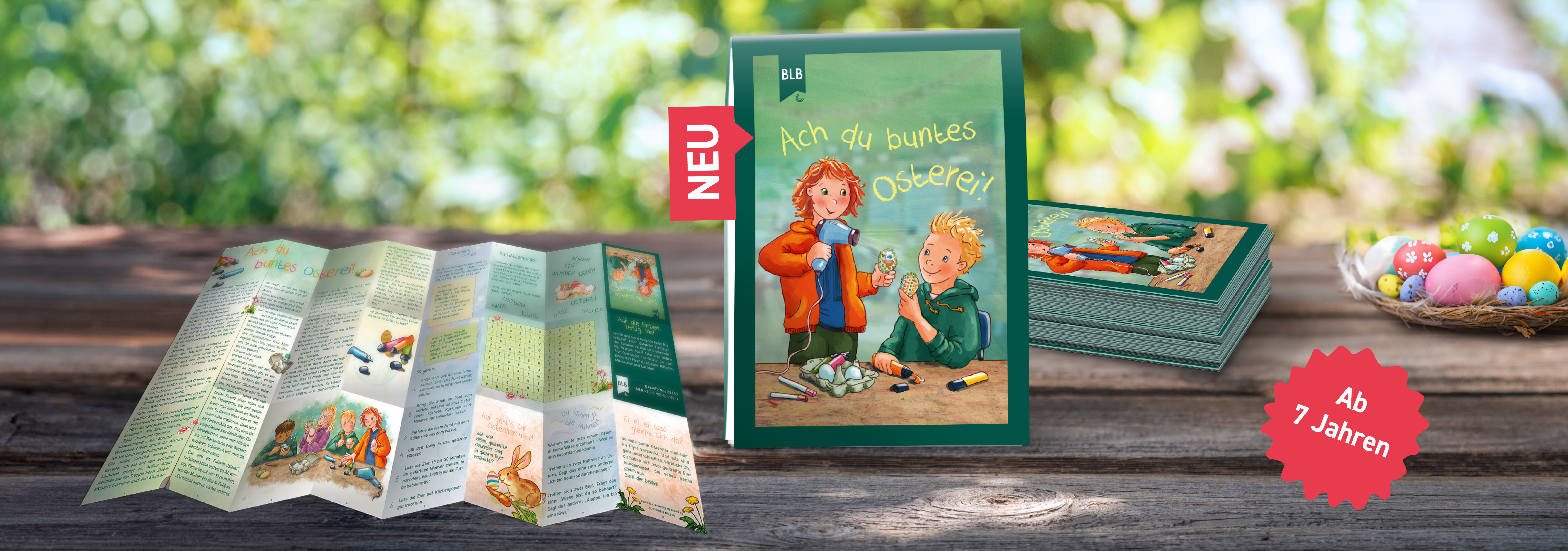 Jannik und seine Freunde haben Riesenspaß beim Ostereier-Bemalen. Nur Caroline verhält sich merkwürdig. Warum bloß? Und was haben Eier überhaupt mit Ostern zu tun? Neben dieser brandneuen Jannik-Geschichte gibt’s im Flyer jede Menge zu entdecken: knifflige Rätsel, kreative Mitmach-Ideen, Witze und eine kindgerechte Erklärung, warum das Ei als Zeichen für neues Leben an die Auferstehung von Jesus erinnert. Perfekt zum Weitergeben und Verteilen. Mit liebevoll illustrierten Bildern von Anna Karina Birkenstock. Für Kinder ab 7 JahrenVerteilflyer mit einer Geschichte, Bildern, Rätseln und vielen kreativen Ideen zum Mitmachen 30 cm × 56 cm, zum Ausklappen