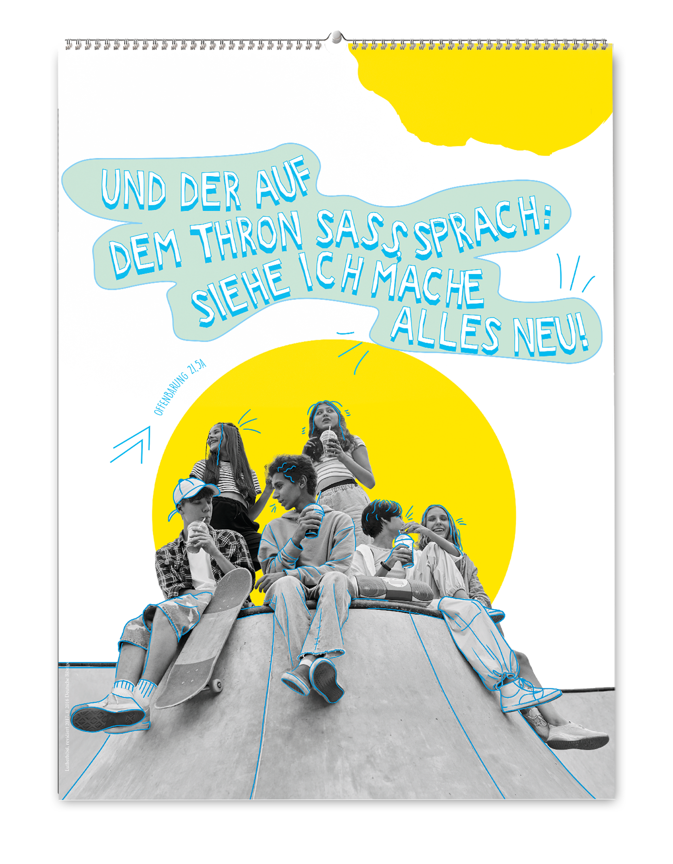 Auf zwölf Postern erinnern unterschiedliche Bibelverse an Gottes starte Zusagen und daran, was wirklich zählt. Dazu gibt es auf jeder Rückseite kurze Impulse zu den Bibelversen, persönliche Statements, Fragen und praktische Tipps für den Alltag und einen Link zu einem Song.