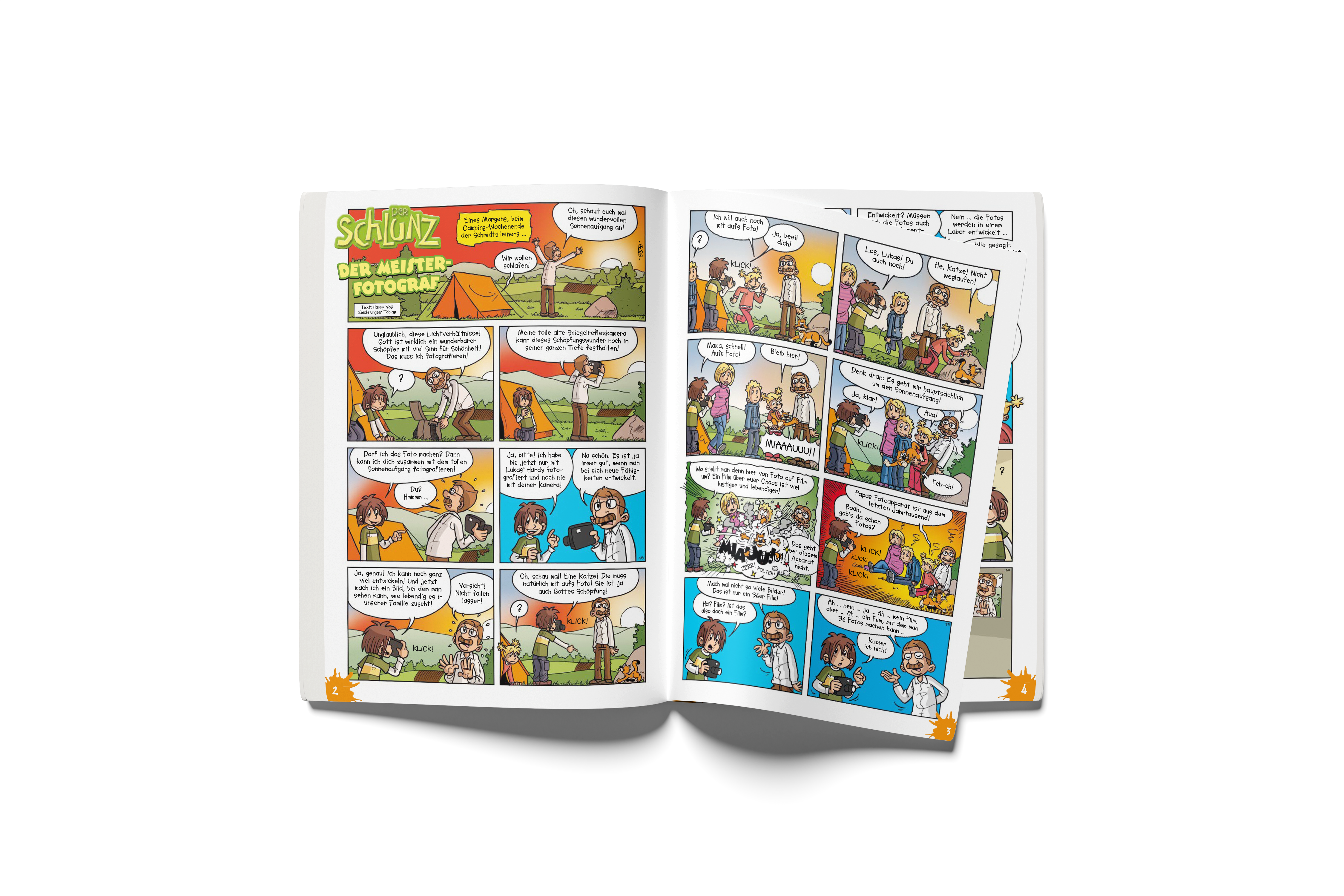 Immer Action mit dem Schlunz! Eine Schleuderwippe ist keine Tortenmaschine. Das spürt ganz besonders Frau Rosenbaum, als eine Torte aus der neuesten Erfindung vom Schlunz in ihrem Gesicht landet. Dass man bei ihm mit allem rechnen muss, spüren auch schnell die Leute aus der Gemeinde. Besonders, wenn der Schlunz die Geschichten aus der Bibel verstehen und nachmachen will. Da kann es schon mal passieren, dass der strenge Arthur mit einem lauten PLATSCH in Mamas Bodylotion landet … Wenn der Schlunz sich mit Gott und der Bibel beschäftigt und Gewohnheiten hinterfragt, entstehen die lustigsten Situationen - und gleichzeitig viele Gelegenheiten, über den Glauben nachzudenken.