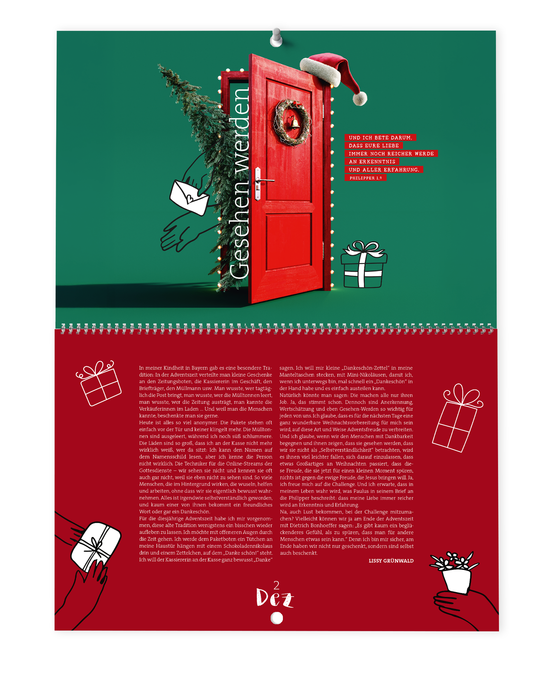 Ein schön gestalteter Adventskalender mit tollen Ideen und Beiträgen von mehreren Autoren. Auch in diesem Jahr erwarten Sie besinnliche und heitere Geschichten sowie schöne Gedichte. Ein kurzweiliger Begleiter durch die Adventszeit mit täglichen Hoffnungsmomenten.