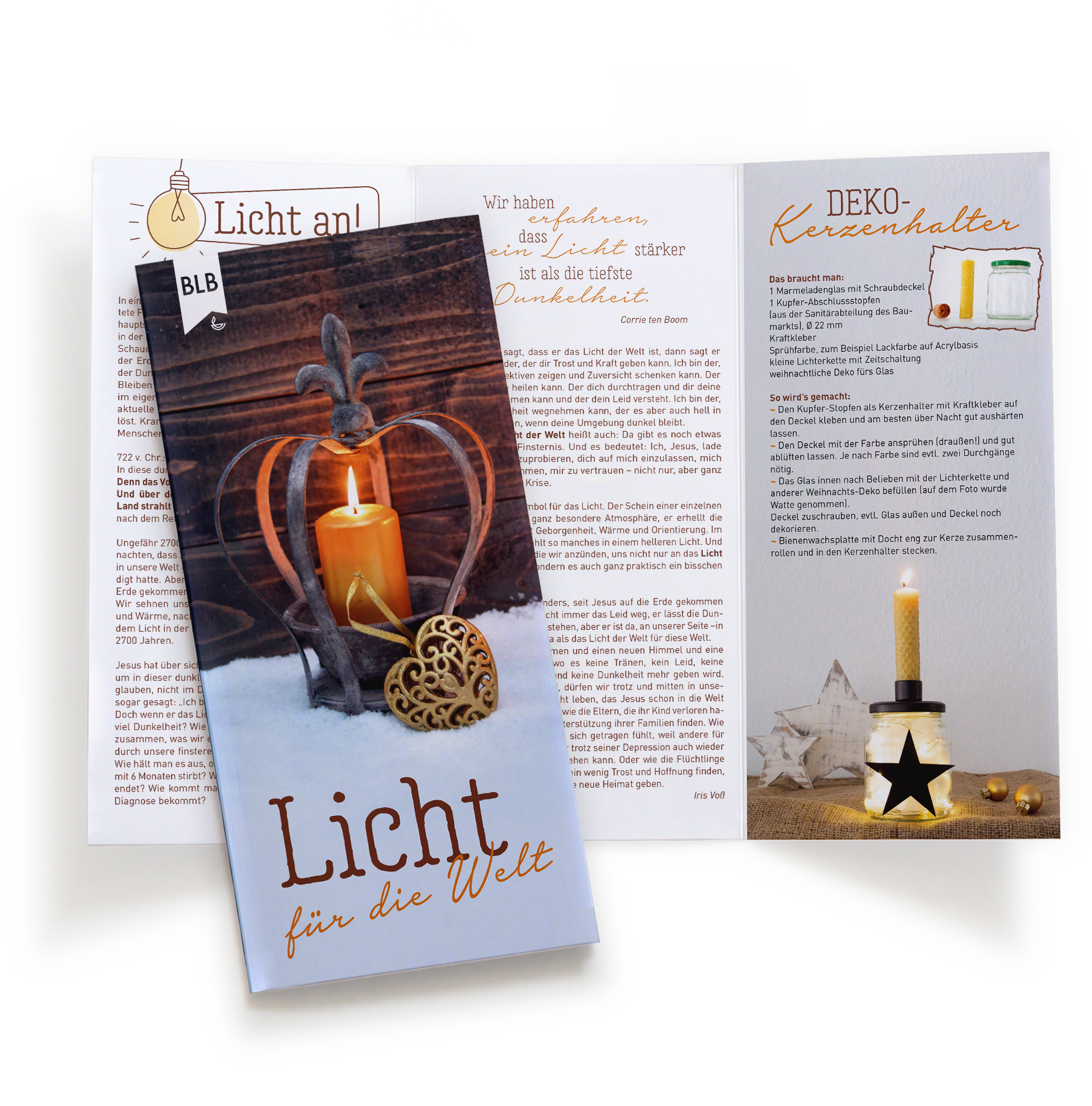 Liebevoll gestaltete Faltkarte mit Geschichten und Gedanken zu Weihnachten. Eine unaufdringliche Einladung für Verwandte, Freunde, Nachbarn, Kollegen oder die ganze Gemeinde, sich auf besondere Weise der Weihnachtsbotschaft zu nähern.